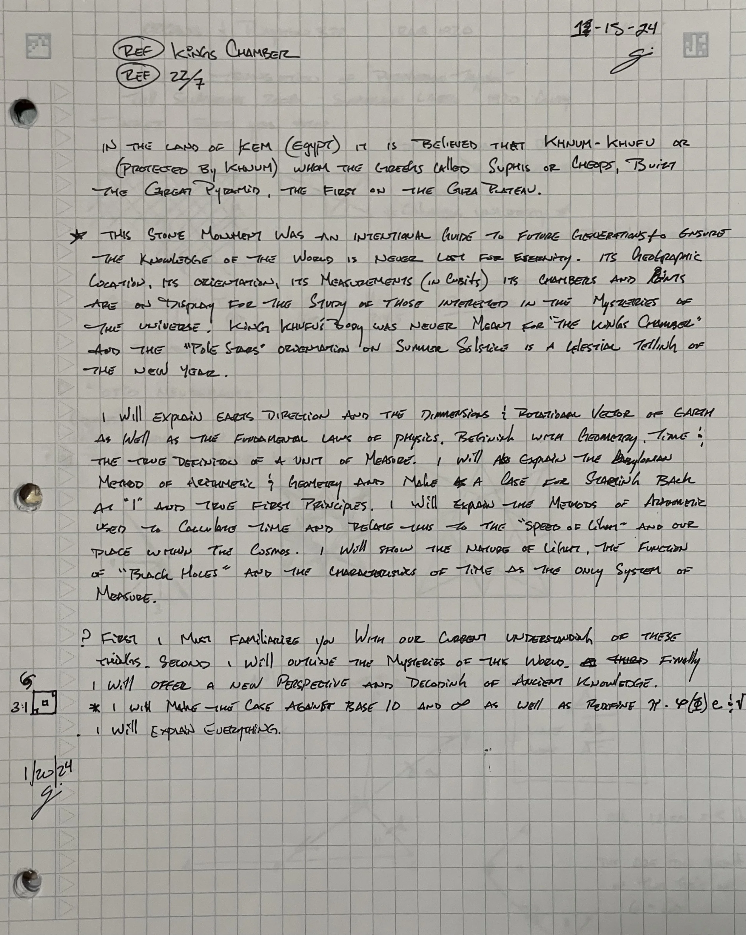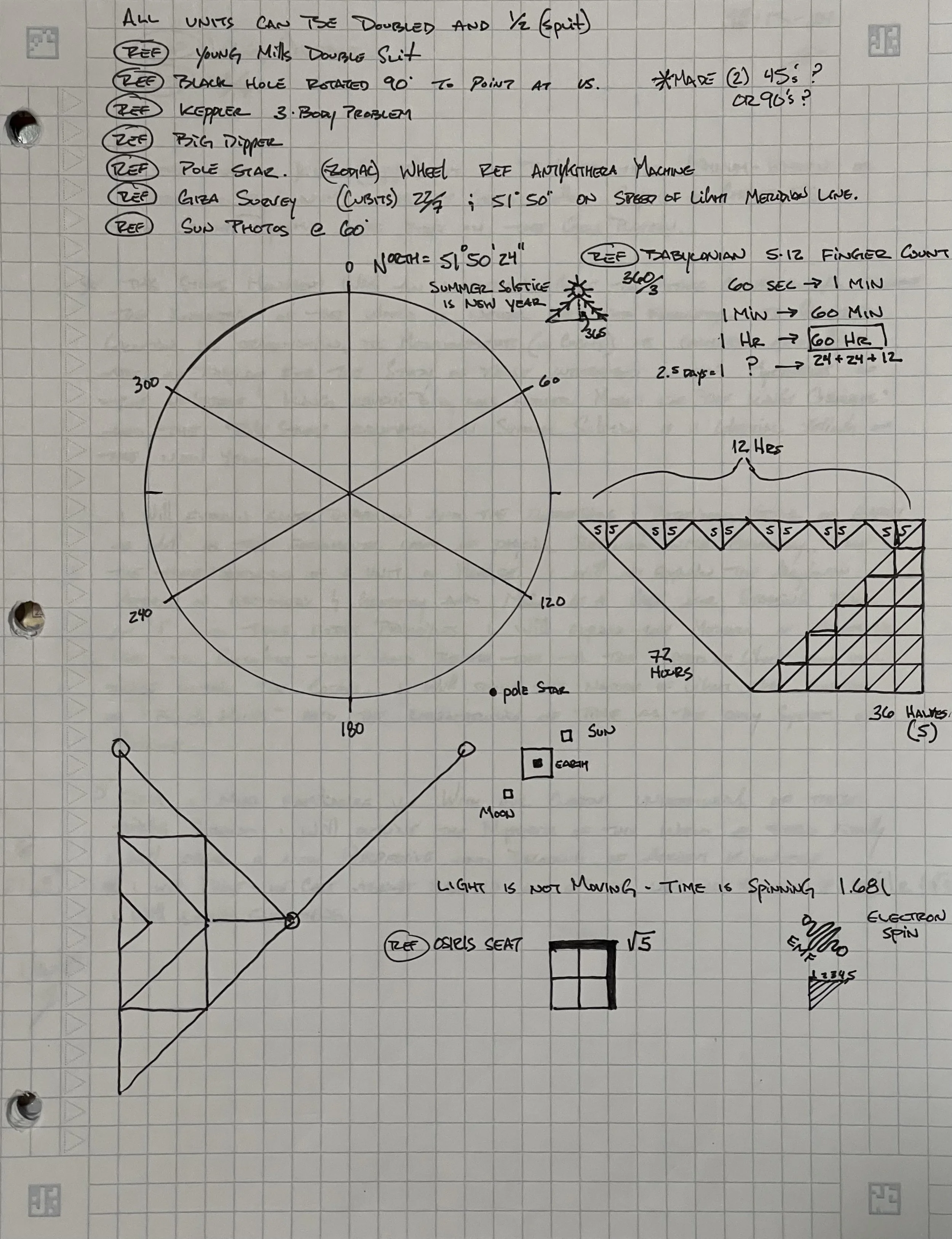 That put me on some other paths and all this time i am also working on the Great Pyramids architecture from Pi to PHI and Its measurements in cubits and the measures of the earth at that period. Like I said these mysteries to me are my jam… what is the pyramid, how built - why do we see these numbers in the Kings Chamber and the measurements outline the measurements of the earth sun and moon. The idea that the summer solstice started their year. These ancient civilizations knew something we don’t and I was bound to get to the bottom of it… especially since our observations clearly show that we have no idea whats going on. I thought when James Webb Space Telescope went up - that certainly humans would see it then. I realized that no one is allowed to say Newton or Einstein might be wrong… not if you want funding. So now I also have a triangle a pyramid and Im studying cubits and sexagesimal math and “Constants” like phi and pi and big G.